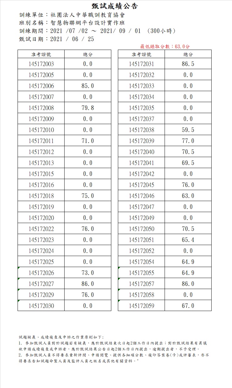 AIoT智慧物聯網系統整合應用班-考試答案公告
