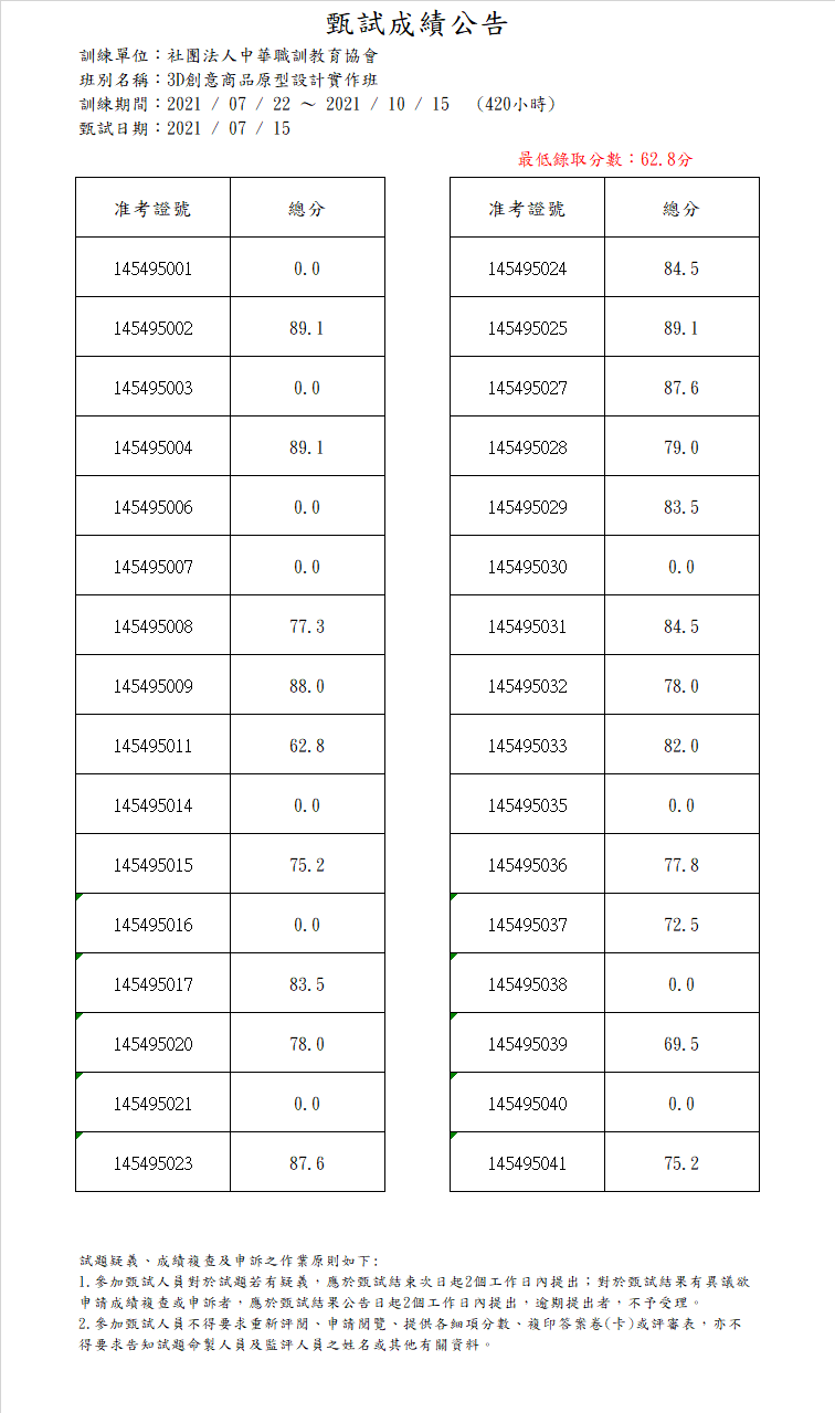 AIoT智慧物聯網系統整合應用班-錄取名單