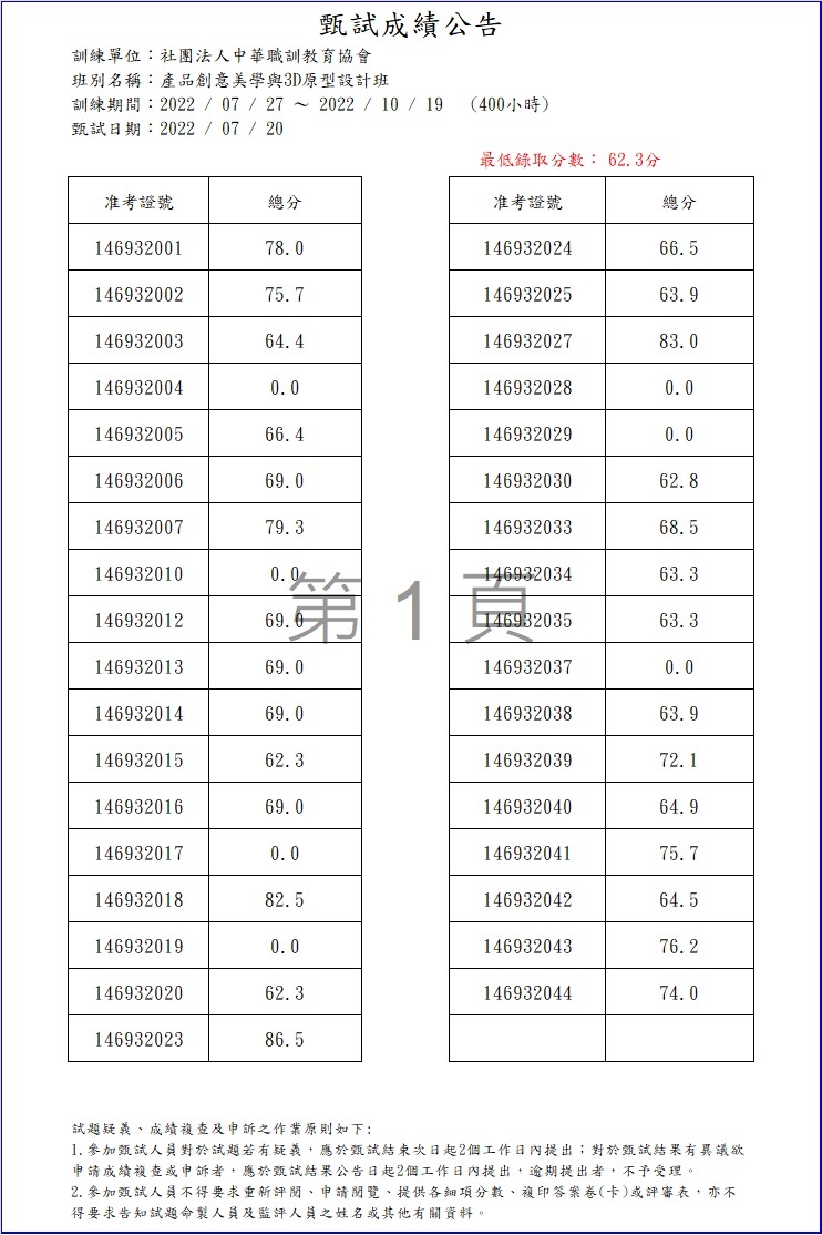 產品設計與3D列印實務班-錄取名單