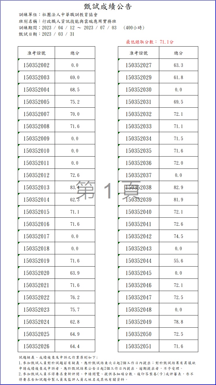 112年度_行政職人資訊技能與雲端應用實務班_成績公告