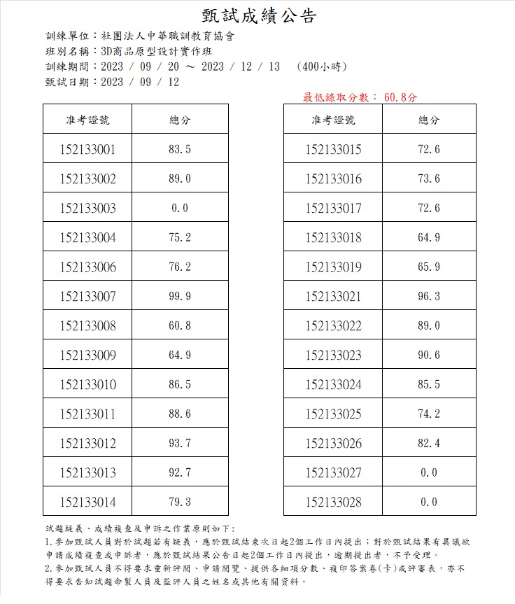112年度_3D商品原型設計實作班_成績公告