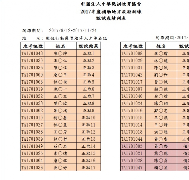106年度_數位行動裝置維修人才養成班_甄試結果名單