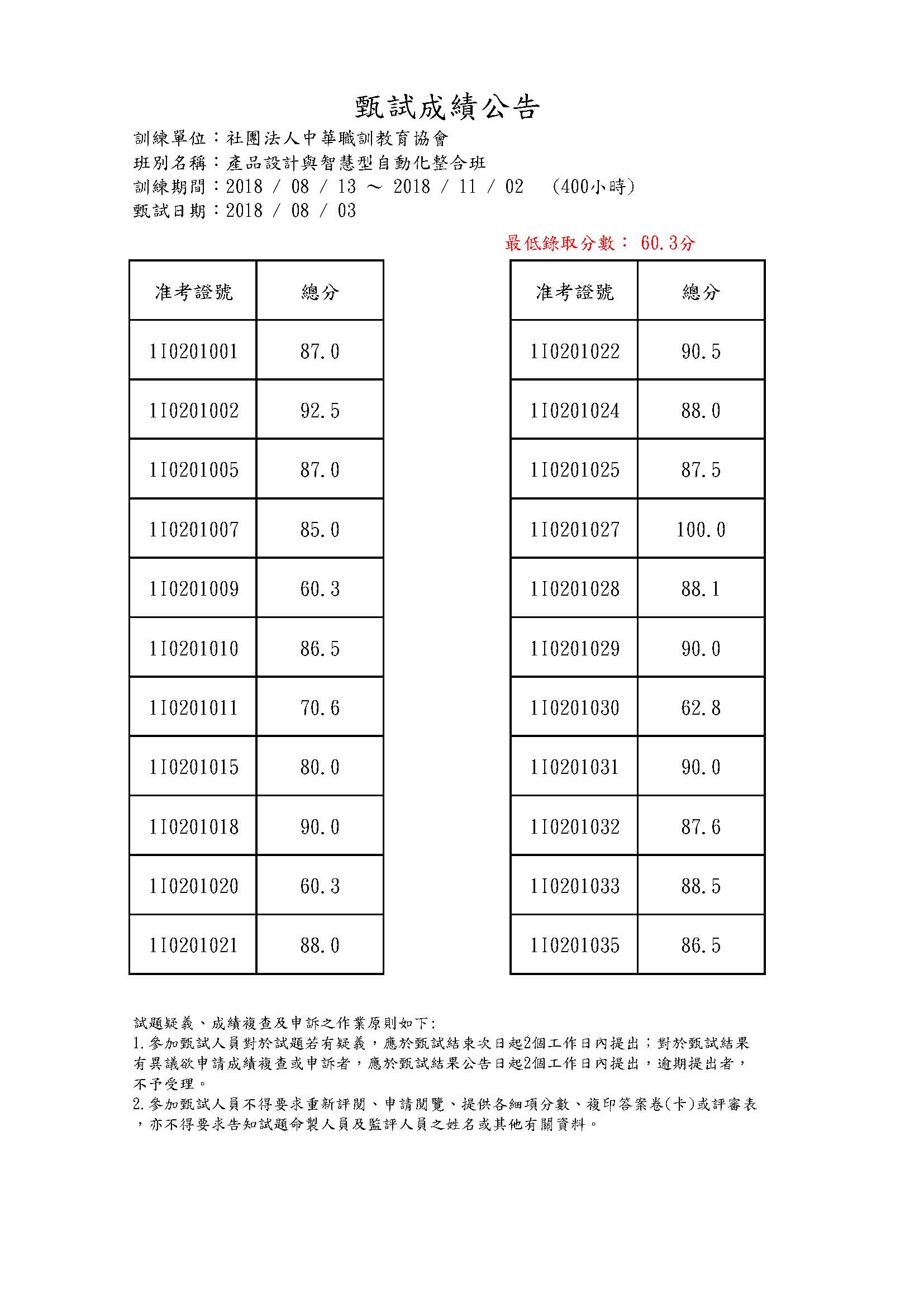 107年度_產品設計與智慧型自動化整合班_成績公告