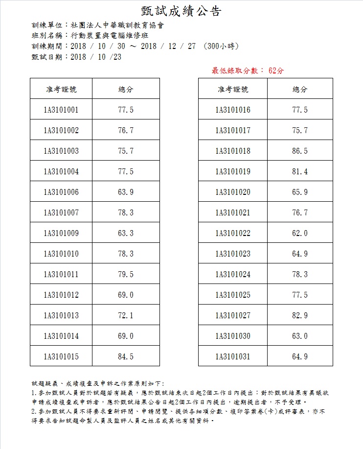 107年度_行動裝置與電腦維修班_成績公告