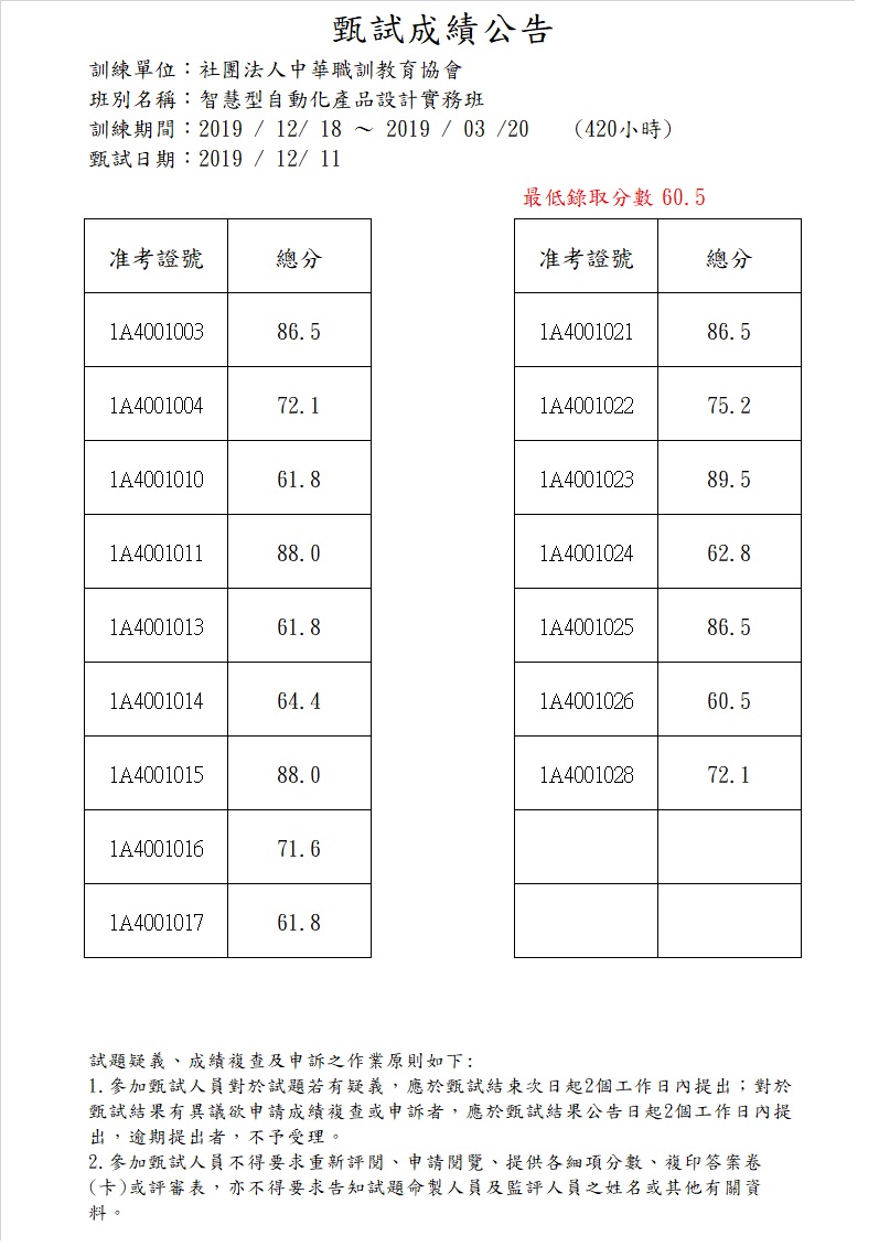 AIoT智慧物聯網系統整合應用班-錄取名單