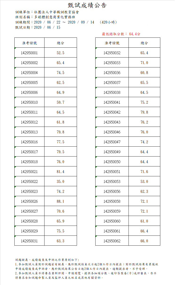 109年度_行政人員雲端資訊技能培訓班_成績公告