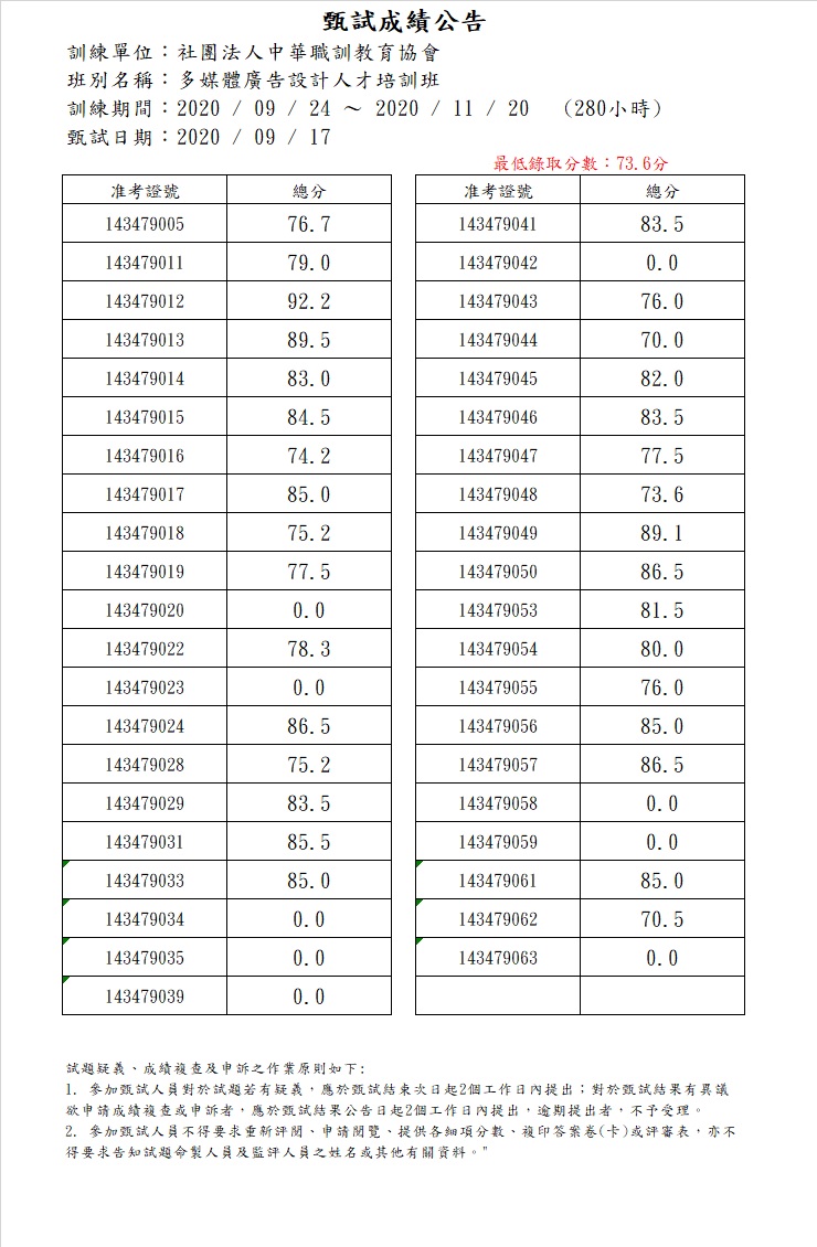 109年度_多媒體廣告設計人才培訓班_成績公告