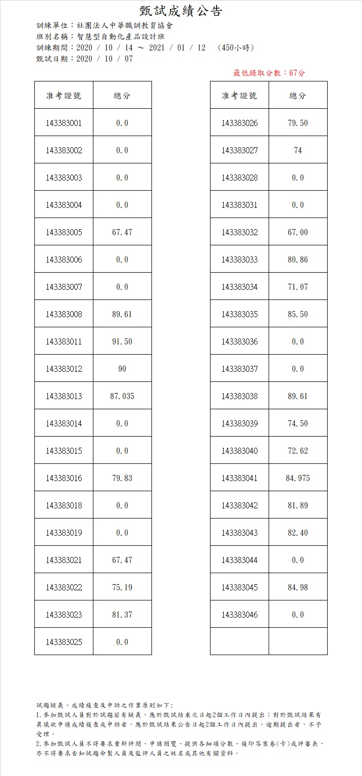 AIoT智慧物聯網系統整合應用班-考試答案公告