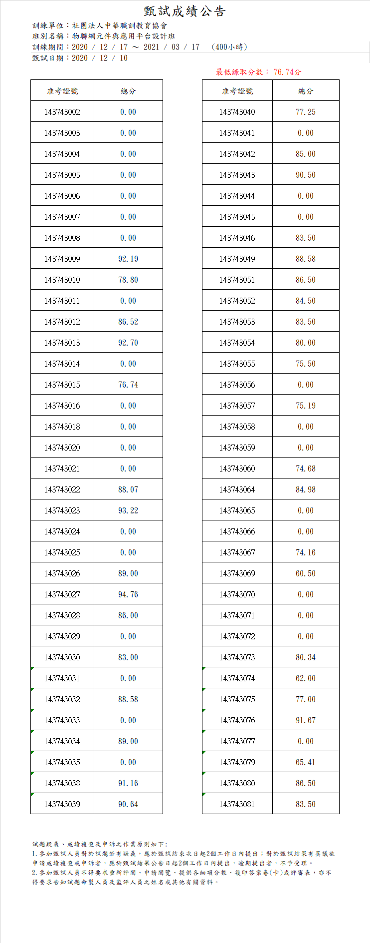 AIoT智慧物聯網系統整合應用班-錄取名單