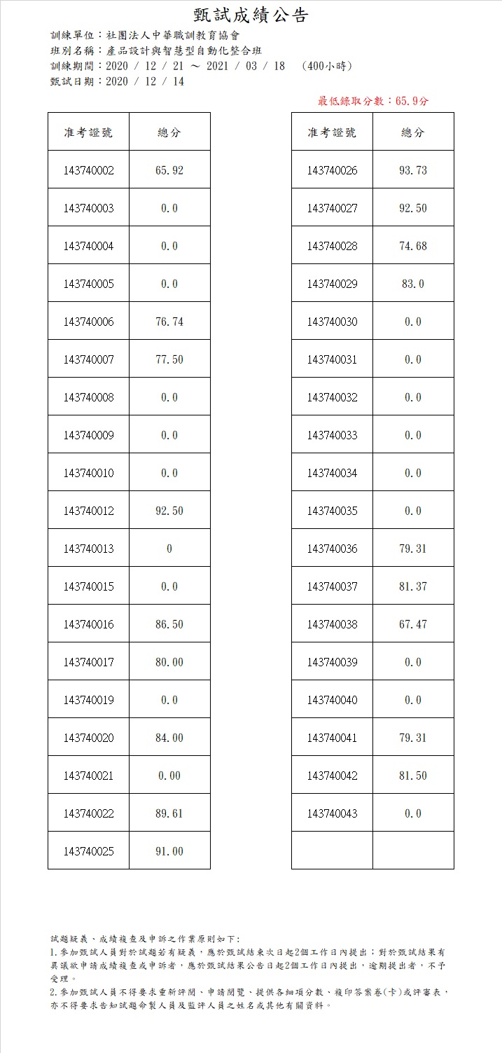 109年度_產品設計與智慧型自動化整合班_成績公告