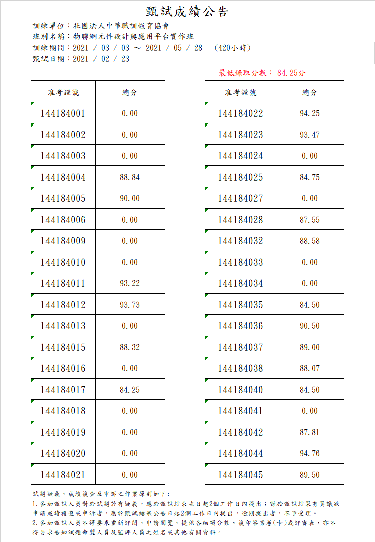 110年度_物聯網元件設計與應用平台實作班_成績公告