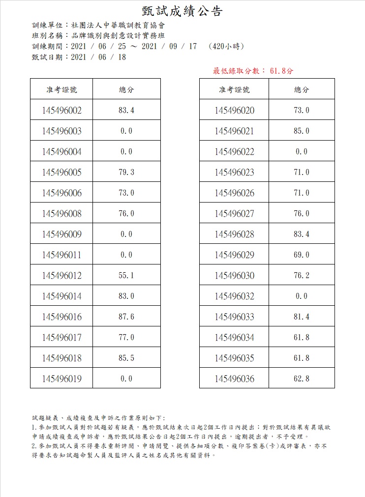 110年度_品牌識別與創意設計實務班_成績公告